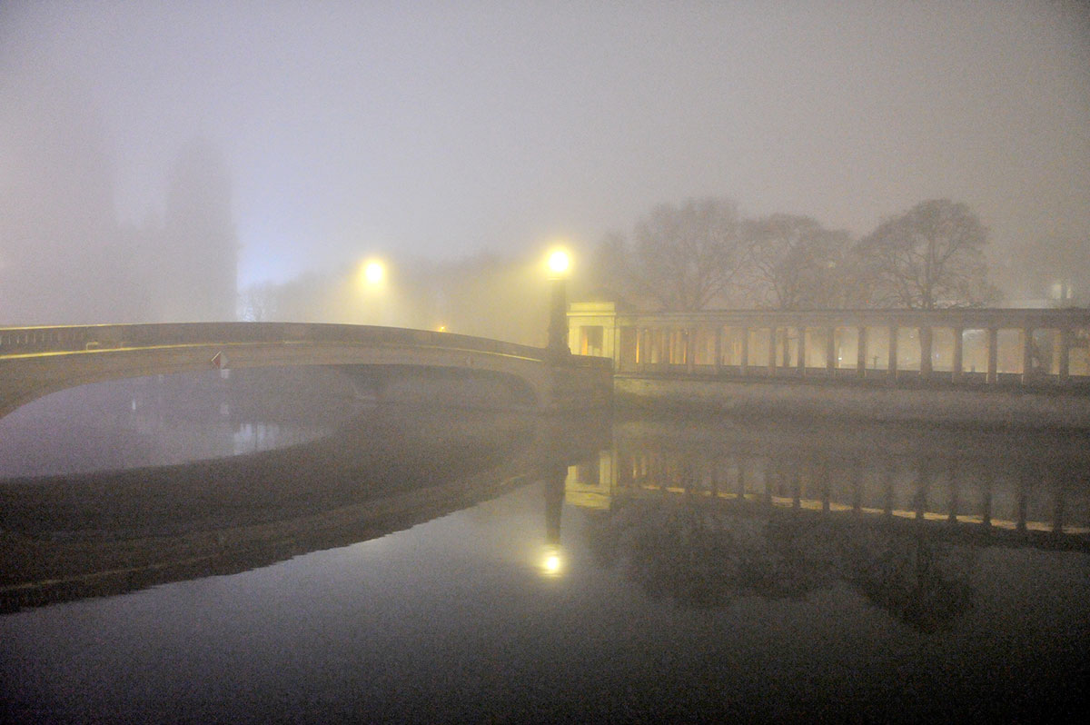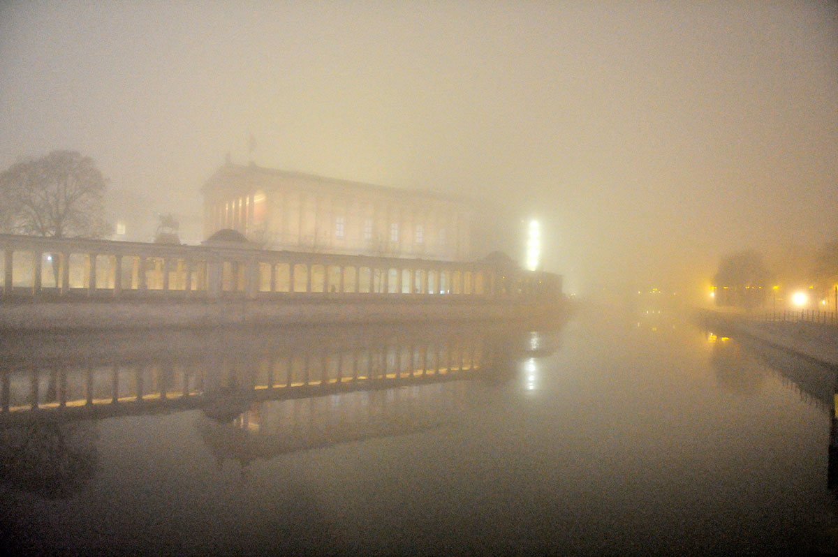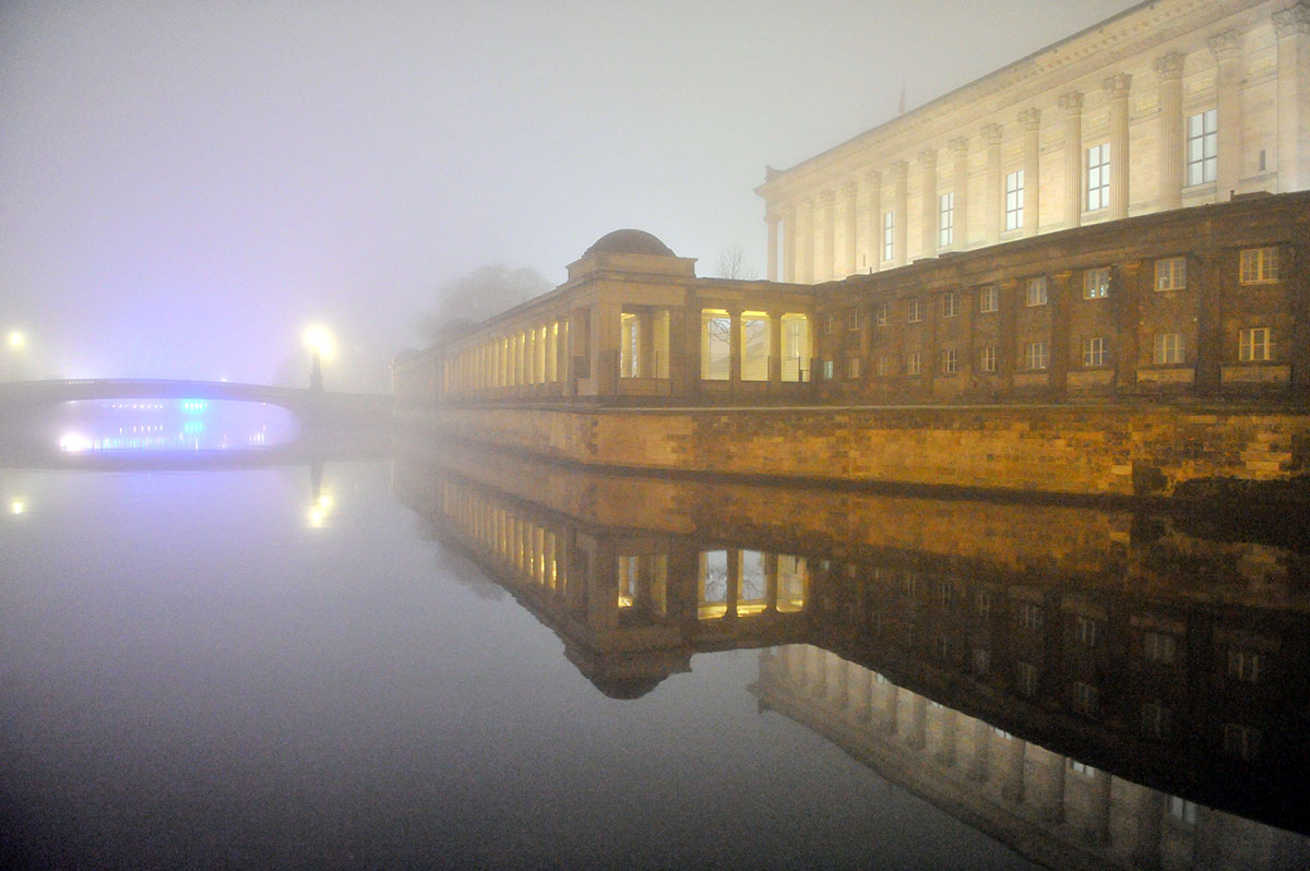 The photographs of these Vigils were taken on unintentional walks in Berlin's Scheunenviertel, the Rosenthaler Vorstadt and the Museum Island in Mitte. The silence of concealing labyrinths of the night had always attracted me, also because here the outer sealing off against the inner gaze, this banal expression of contemporary architecture no longer remains dominant. The inner and outer moods experienced on those walks, the astonishing sensation of being looked at by a found scenery, form the starting point for the creation of the pictures. Involving myself in reading these moods and feelings in the sense of Proust as signs of laws and ideas that need to be transformed into an intellectual equivalent, I was tempted to visualise the impressions.